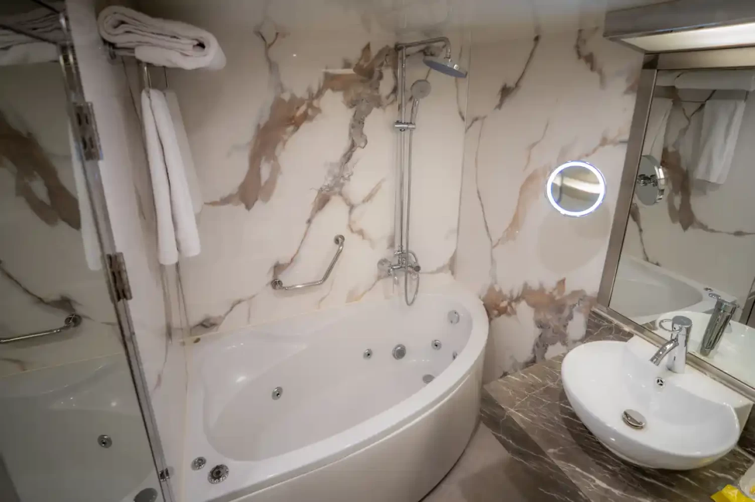 Less than 6 years old child will be free of charge sharing parents’ cabin.