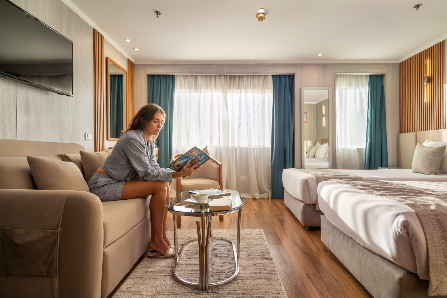 Triple deluxe cabins are based on extra bed to be placed in twin bedded cabins.